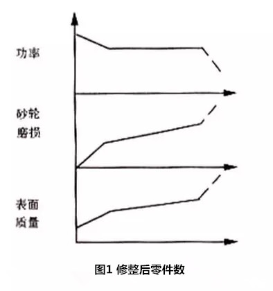 一般情況下,砂輪經(jīng)一定數(shù)量零件磨削、修整后,磨削力、砂輪磨損、表面變化的過程如圖1所示。修整后,磨削力相對較大,但磨削幾個零件后磨削力迅速下降。一般,每一修整周期的2%~10%的零件受到這一變化的影響。在砂輪性能不穩(wěn)定的這一階段,零件質(zhì)量還受到工件和砂輪軸偏心的影響,同時砂輪磨損更快,表面粗糙度迅速增大。為解決這些問題,用戶必須在每個零件磨削后檢查砂輪的性能,在下個零件磨削前做必要的調(diào)整。