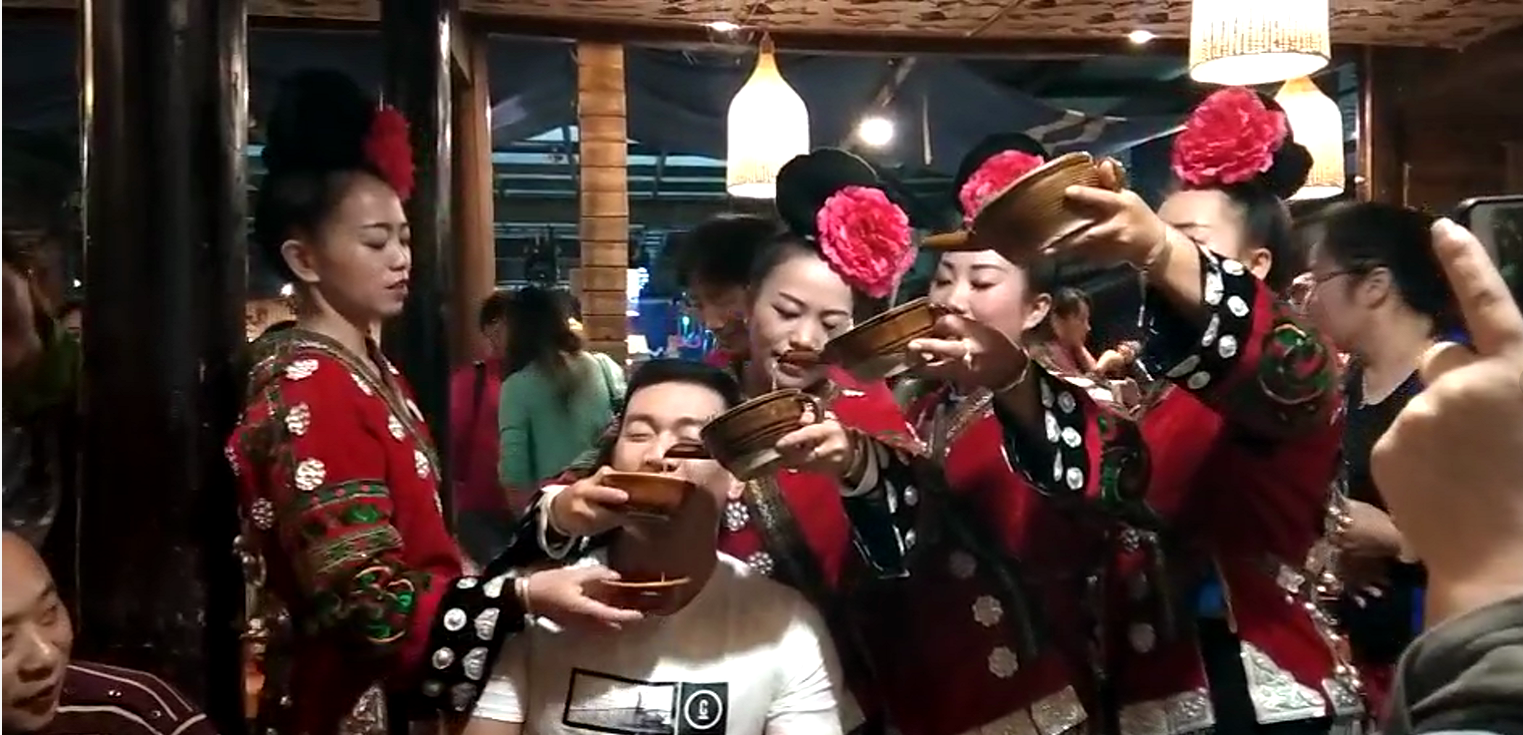 圖1:苗族阿妹的“高山流水”式敬酒