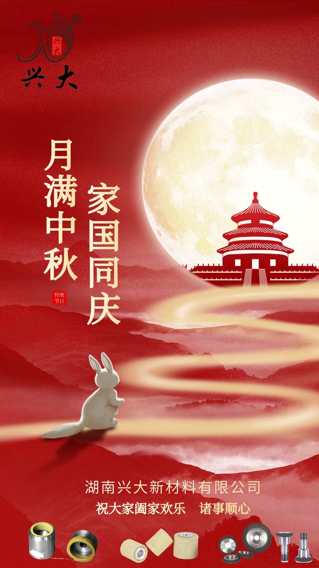 中秋、國(guó)慶佳節(jié)即將到來(lái),在這個(gè)舉國(guó)歡慶,全家團(tuán)圓的日子里,湖南興大新材料有限公司為大家準(zhǔn)備了一份小禮物,祝愿大家節(jié)日快樂(lè)、闔家幸福